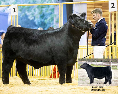 ![]() Grand Champion, 2018 Ohio State Fair Monopoly x 618 Shown by Caden Jones. Sold by Blaine Rodgers and Wade Rodgers |