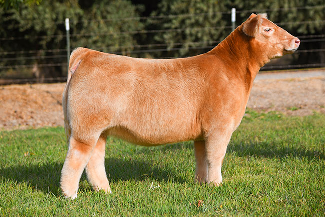 ![]() Lot 5 Sire: Here I AM // Dam: I80 x Angus DOB: 3/15/2020 // Breed: Chi View Video BIG FEATURES best describes this beast. Huge feet and legs, big, square butt, and as Shane Geist would say, "Stupid haired." We sheared her off in June and by the first of August, she had great hair again...in spite of many days over 100°. She's very sound, great at the ground, and perfect in her hock. Added bonus, she has that little shot of white to set her off in the show ring. Lot 5 will likely be the most competitive shown in the market heifer division. Her mother, a good-looking I80 cow, that's close to as wide as she is tall has always done a great job for us. This year, we feel like we got her bred right and plan to make a bunch more of them next year as she moves into the donor pen. |