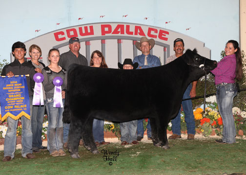 ![]() Champion Market Heifer 2014 Cow Palace Shown by Emily Nunez Monopoly x Miss Dejavu 618S |